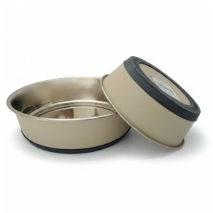 Miska nerez stabil broušená-SILIKON 0,9 lNerezová miska, opatřená silikonovým kroužkem, je více stabilní a neklouže po podlaze.