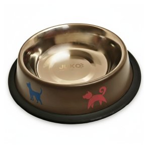 Miska nerez hnědá potisk psi 0,55 lHnědá nerezová miska s barevnými pejsky po obvodu.