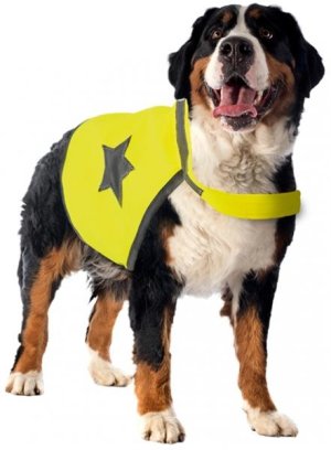 Reflexní vesta pro psa je ideální doplňkem k večernímu venčení.