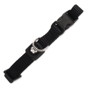 Pevný nylonový obojek s gumovou sponou k nastavení velikosti.