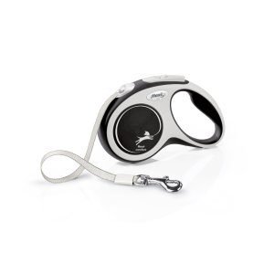 Kvalitní samonavíjecí páskové vodítko s reflexními prvky a karabinou pro psy s váhou do 25 kg.