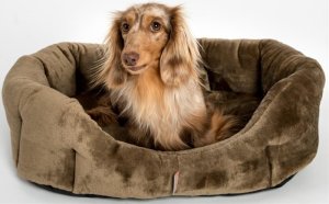Látkový pelíšek pro psy s vyvýšeným polstrovaným okrajem.