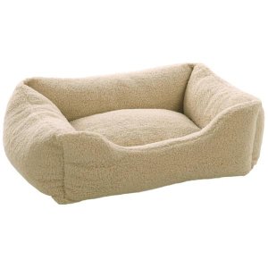 Látkový pelíšek pro psy s vyvýšeným polstrovaným okrajem.
