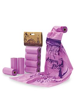 Sáčky na psí exkrementy.originální potiskpříjemná vůně levandulerozměr: 23 x 33 cmbalení: 80 sáčků (4 role po 20ks)barva: fialová