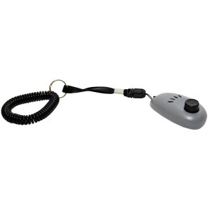 Kompaktní klikr na výcvik psa vhodný na vodítko.