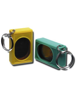 Kompaktní klikr na výcvik psa s gumičkou pro upevnění na prst.