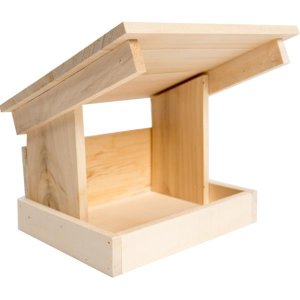 Krmítko tuzemské výroby ze dřeva listnatých stromů.