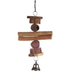 Hračka z přírodních materiálů pro zabavení papoušků v kleci.