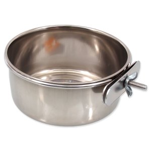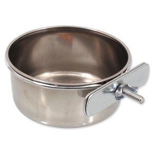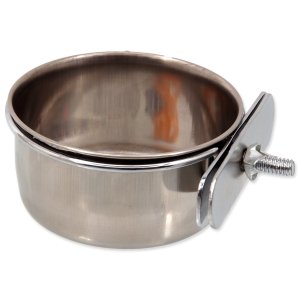 Nerezová miska k přišroubování do klecí pro ptáky.