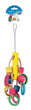 Dřevěná hračka pro ptáky a malé hlodavce slouží k zavěšení do klece.