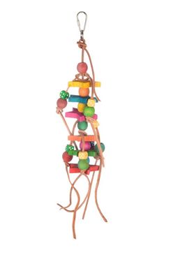 Dřevěná hračka s korálky, kostkami a hvězdami, která je vhodná pro malé, střední a velké exoty. Materiál: dřevo, plast, kov, kůžeDélka: 30 cm