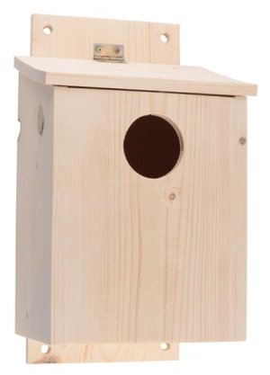 Venkovní dřevěná budka s odklápěcí střechou je vhodná pro hnízdění velkých druhů sýkor (koňadra, babka a další), vrabce, brhlíky, …