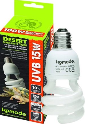 Úsporná terarijní žárovka Komodo Compact Lamp UVB 10% je vhodná pro menší terária (o délce max. 60 cm) a pro chov plazů, kteří vyžadují …