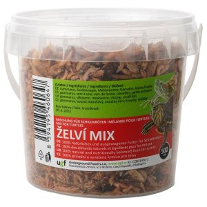 Želví mix je 100% přírodní krmivo pro vodní a suchozemské želvy, které obsahuje mix vodních živočichů a sušený hmyz pro pestrost a vyváženost jejich potravy.Obsahuje gammarus, bource morušvyového, moučného červa, krevety a rybičky.