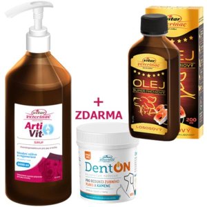 Balíček obsahuje: 1x Artivit sir. 1000 ml 1x DentON plv. 100 g 1x Vitar veterinae lososový olej 200 ml Informace k produktu Artivit sir. 1000 ml ZDE.