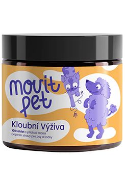 Komplexní doplňkové krmivo MOVit PET Kloubní Výživa pro psy a kočky s obsahem glukosaminu, chondroitinu, MSM, kolagenu, hyaluronátu a extraktu ze slávky zelenoústé.