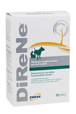 Doplňující krmivo pro psy a kočky Direne tablety, které mají být použity k podpoře procesů lékové terapie v případě selhání ledvin.Direne tablety jsou indikovány v případě selhání ledvin Vašeho psa nebo kočky.