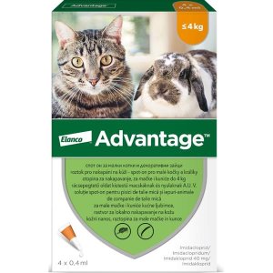 Advantage spot-on je vhodný k léčbě a prevenci napadení blechami pro kočky a králíky do 4 kg.