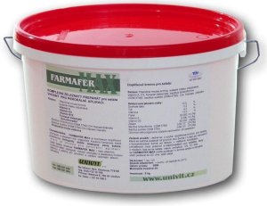 FARMAFER MAX je schválený veterinární přípravek, jedná se o komplexní přípravek s obsahem vitamínů, užitečných mikroorganismů a organicky vázaného železa, které slouží jako biologicky dobře dostupný zdroj železa vhodný na perorální aplikaci.