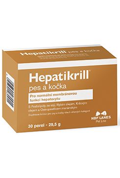 Hepatikrill ve složení s rybím olejem, sójovými fosfolipidy, krilovým olejem, ostropestřcem mariánským a vitamínem E je určen pro podporu normální funkce membrány hepatocytů. ProduktPro normální funkci membrány hepatocytů.Doplňkové krmivo pro psy a kočky všech věkových kategorií obsahující sójové fosfolipidy, rybí olej, krilový olej a ostropestřec mariánský. SLOŽENÍŽelatina (hovězí), rostlinné oleje a tuky (rafinovaný slunečnicový olej), rybí olej (35 % EPA-25 % DHA) 12,1 %, rostlinné oleje a tuky (sójové fosfolipidy – 33 % fosfatidylcholinu) 9,2 %, glycerol, krilový olej 5 %, vedlejší včelařské produkty (včelí vosk), sacharóza, sorbitol.