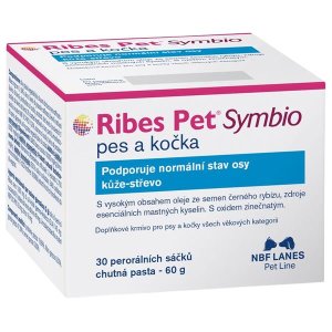NBF Lanes Ribes Pet Symbio je přírodní doplňkové krmivo ve formě chutné pasty balené v sáčcích, které podporuje správnou funkci osy kůže–střevo …