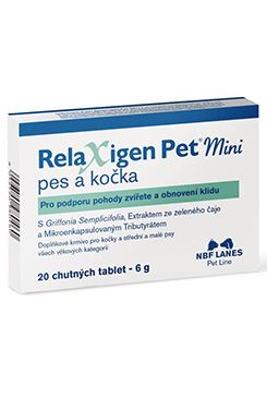 Doplňkové krmivo ve formě chutných tablet pro psy a kočky všech věkových kategorií, obsahující Griffonia simplicifolia, extrakt ze zeleného čaje a mikroenkapsulovaný tributyrát.
