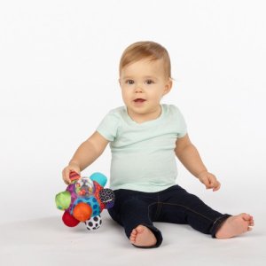 barevný míček s výraznými výběžky, které vybízejí k natahování, uchopení a přenášení z jedné ručičky do druhé