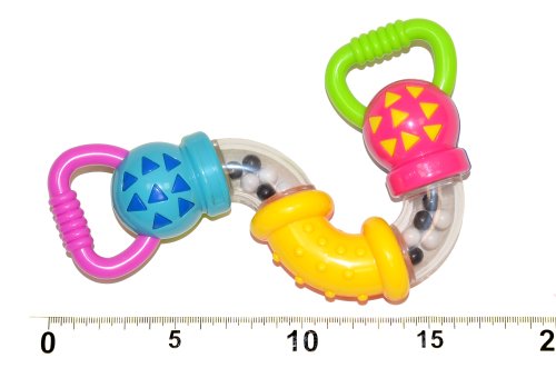 Chrastítko se skládá z různobarevných trubiček, které se dají otáčet. Při otáčení vzniká chrastivý zvuk. Hrkávka hrká také díky kuličkám, kterými je naplněna. Hračka má pohodlné úchyty. Velikost: 17x11cm