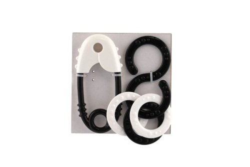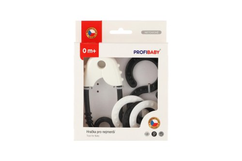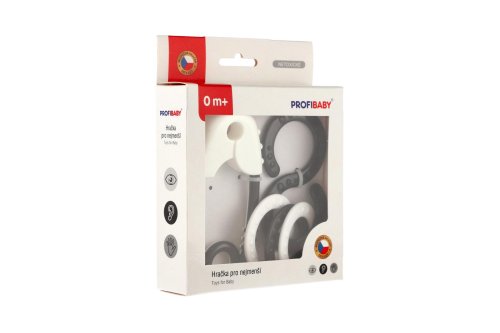 Sada chrastítek obsahuje klasický špendlík a osmičku s kroužky. Chrastítko jsou vyrobeny v černobílých barvách, které dokonale stimulují zrak dítěte, které ještě nerozlišuje barvy. Hračka má lehkou konstrukci a správnou velikost pro ruku malého dítěte. Některé lehké zvuky stimulují sluchové smysly. Rozměry balení 13 x 16 x 4 cm Vhodné pro děti od narození