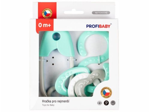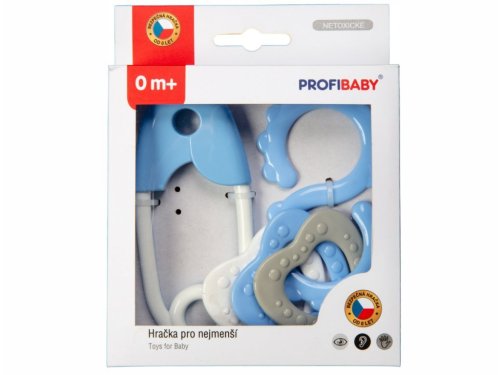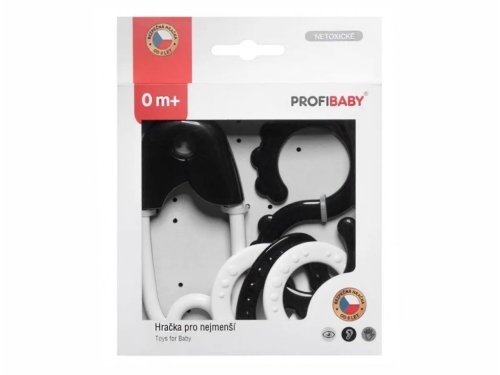 Sada chrastítek obsahuje klasický špendlík a osmičku s kroužky. Chrastítko jsou vyrobeny barvách, které dokonale stimulují zrak dítěte, které ještě nerozlišuje barvy. Hračka má lehkou konstrukci a správnou velikost pro ruku malého dítěte. Některé lehké zvuky stimulují sluchové smysly. Rozměry balení 13 x 16 x 3 cm Vhodné pro děti od narození