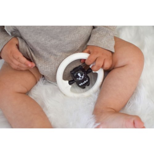 Černobílé dětské chrastítko je díky svému tvaru a kombinaci barev u dětí velmi oblíbené a stimuluje rozvoj jejich koordinace a smyslů. Je vyrobeno z vysoce kvalitních, bezpečných a odolných materiálů. Nemá žádné ostré hrany a neobsahuje bisfenol A (0% BPA).