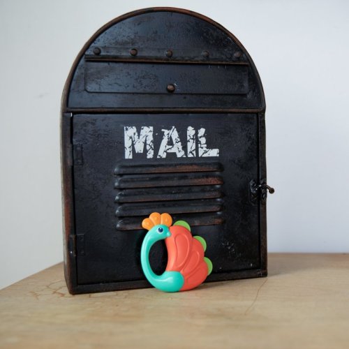 Lehké, barevné chrastítko v podobě zvířátka.