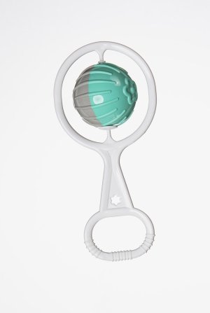 Klasické dvoubarevné chrastítko s ručkou z plastu v retro stylu. Chrastící zvuk děti uklidňuje, navíc se děťátko učí vnímat a zpracovávat okolní podněty. Průměr 5 cm. Vhodné od narození.