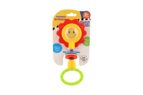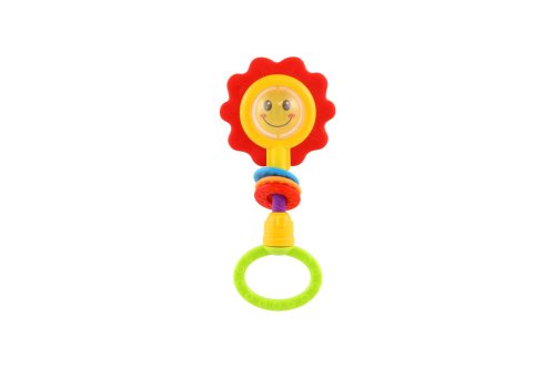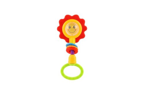 Chrastitko obsahuje uprostřed květiny krásného lvíčka nebo usměvavou tvář. Také kroužky a otáčecí rukojeť, která při pohybu vydává zvuky cvakání. Rozměr chrastítka: 8 x 19 cm Vhodné pro děti od 3 měsíců