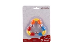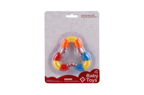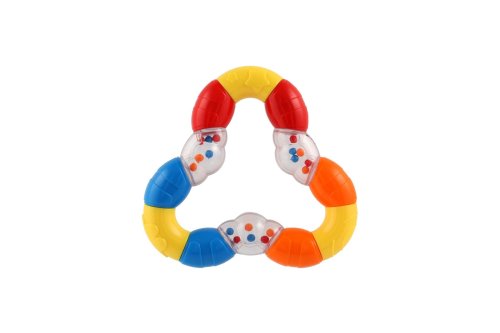 Lehoučké chrastítko ve tvaru trojúhelníku je ideální pro první hry miminek. Flexibilní plast je příjemný na dotek, snadno se drží i těmi nejmenšími ručičkami a slouží zároveň jako kousátko pro zklidnění dásní. Jemné chrastění podporuje sluchové vnímání a zaujme pozornost dítěte. Rozměr:10 × 10 cm Vhodné pro děti od 0 měsíců