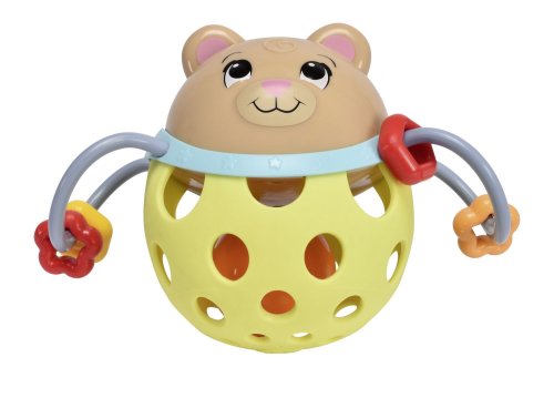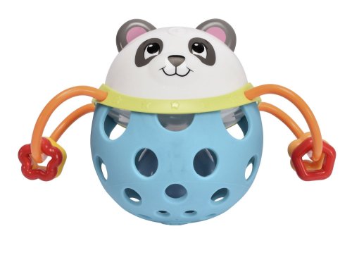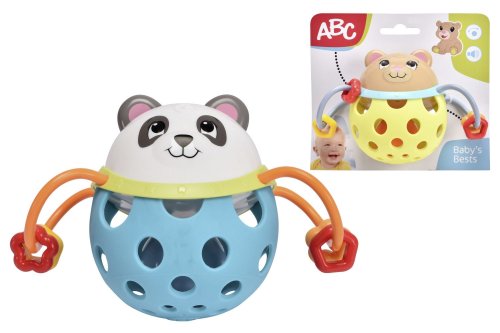 Kulaté chrastítko ve dvou barvách: žlutá - medvídek nebo modrá - panda. Velikost 10 cm.