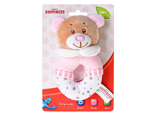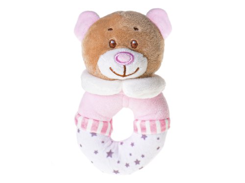 Chrastítko plyšový medvídek 13 cm na kartě - mix barev (růžová, modrá)