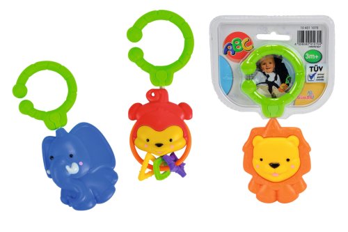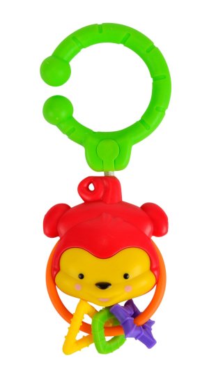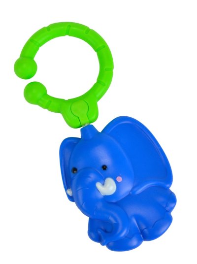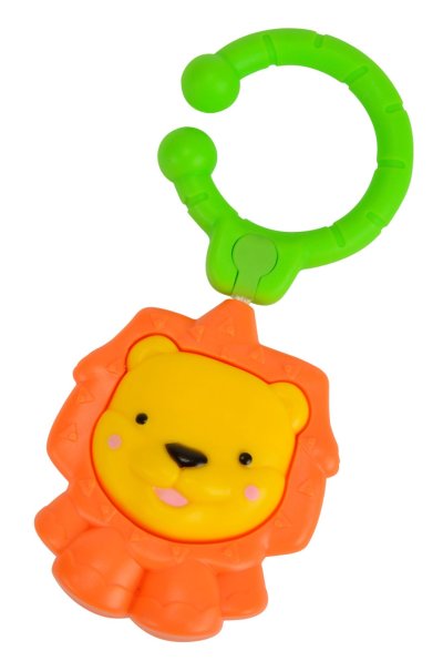 Chrastítko s klipsou pro uchycení např. na pás autosedačky. Velikost 8 cm. 3 druhy: lev, slon nebo opička.