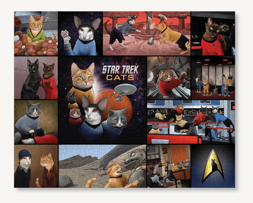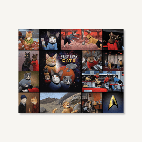 Prozkoumejte galaxii s kočíčí posádkou z lodi USS Enterprise. Toto puzzle oslavuje klasickou sérii Star Trek s posádkou koček! 1000dílné puzzle obsahuje milované ilustrace Jenny Parksové, které přetvářejí posádku USS Enterprise jako kočky, což je ideální pro fanoušky všech věkových kategorií, aby si společně užili skládání. TM & © 2021 CBS Studios Inc. Star Trek a související značky a loga jsou ochranné známky společnosti CBS Studios Inc. Všechna práva vyhrazena. Ideální pro fanoušky Star Treku i fanoušky koček od 9 let. Hlavní vlastnosti: Obsahuje 1000 dílkůPotištěno netoxickými inkoustyPrémiová kvalita puzzleJednotlivé dílky do sebe přesně pasujíRozvíjí logické myšlení a motorikuIlustrace Jenny Parksové