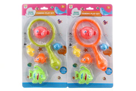Chytání rybiček. Balení obsahuje podběrák a 5 rybiček různých tvarů a velikostí. Baleno na kartě. Materiál plast. Rozměry balení 20x35x3 cm. Věk 3+