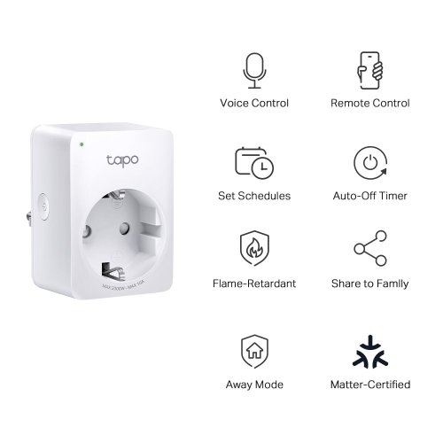 Chytrá zásuvka Tapo P100M od značky TP-Link vám usnadní život v domácnosti i v kanceláři. Poskytuje spoustu praktických funkcí, které si oblíbíte. Oceníte vzdálené ovládání, časovač, režim nepřítomnosti, jednoduchou správu a mnoho dalších vychytávek. Tapo P100M má kompaktní rozměry, abyste měli pohodlný přístup i k sousedním zásuvkám.