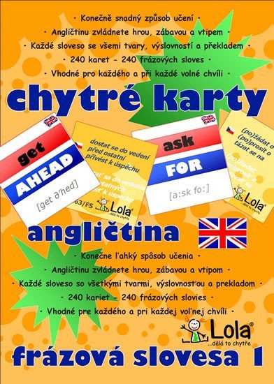 Snad každý, mě nevyjímaje, se zděsil, když se v rámci učení angličtiny dopracoval k frázovým slovesům a vše, co doposud pochopil, bylo rázem ztraceno a život se zdál o mnoho těžší?. Postupně jsem je nějak zvládla a přijala za své, nicméně mně dalo poměrně velkou práci shromáždit prakticky všechna frázová slovesa do jedné sestavy, protože v každé z učebnic, které jsem prostudovala, jsem našla pouze jejich výběr a mně pokaždé nějaká slovesa chyběla a musela jsem hledat a hledat. Protože sloves je celkem 480 těch nejpodstatnějších, rozdělila jsem je do dvou sad po 240 kartách. Chytré Karty - frázová slovesa pomohou každému, kdo je ztracen v jejich bludišti. Každá ze 480 karet obsahuje na lícové straně základní sloveso s předložkou včetně jejich výslovnosti. Na rubové straně najdete nejčastější významy daného slovesa v češtině a slovenštině. Vytvořila jsem tedy formu, pomocí které se dají frázová slovesa zvládnout téměř bezbolestně. Mějte karty stále u sebe, noste je po částech nebo všechny – záleží jenom na Vás, co Vám bude vyhovovat. > Tyto Chytré karty jsou určeny pro studenty angličtiny všech úrovní, protože frázová slovesa používáte od začátku (třeba WAIT FOR) a můžete si z karet vybrat ta slovesa, která zrovna potřebujete. Jsou dokonalé také pro rodiče i bez znalostí angličtiny, kteří mohou využít karty k prozkoušení dětí.