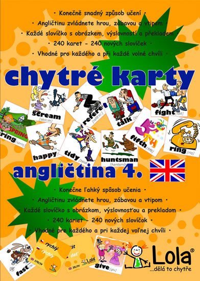 Nikdy nebylo učení tak snadné! CHYTRÉ KARTY představují ten nejoptimálnější způsob, jak se naučit cizímu jazyku. Pečlivě jsem pro Vás vybrala ta nejpoužívanější slovíčka, která prostě musíte zvládnout na své cestě ke hvězdám. A právě obrázkové CHYTRÉ KARTY Vám budou na této cestě průvodci, kteří Vás nikdy nezklamou. Každá z kartiček má na své lícové straně kromě vybraného slovíčka i obrázek, který by se Vám měl vybavit pokaždé, když dané slovíčko vyslovíte, a také srozumitelnou výslovnost. Na rubu potom najdete překlad daného slovíčka. Toto rozložení jsme zvolila právě proto, abyste co nejlépe zvládli proces učení. V každé sérii naleznete 240 nových slovíček sestavených vždy tak, aby Vás posunuly o výrazný krok vpřed. Takových sérií jsem pro Vás připravila několik, čímž byste měli zvládnout kolem 1.500 slovíček a dosáhnout pokročilé úrovně. CHYTRÉ KARTY jsou natištěny na kvalitním křídovém lesklém papíře, aby Vám vydržely co nejdéle. Jednotlivé karty jsou čtvercového tvaru, každá strana měří 48 mm. Stejný rozměr stran jsem, na rozdíl od jiných, podobných karet zvolila pro lepší skladovatelnost, snadné míchání, rovnání a práci s kartami. Jak s kartičkami pracovat? Můžete se učit sami, ve dvojicích nebo zapojit celou rodinu. CHYTRÉ KARTY pokaždé pečlivě zamíchejte, abyste se neučili slovíčka „v sériích“. Učte se z rubu nebo lícové strany – není to podstatné, nakonec stejně budete muset umět strany obě. Otáčejte kartičky a sami si nahlas říkejte překlad. Noste je neustále při sobě - v kapse, v tašce, v ruce - využijte každou volnou chvilku o přestávce, na cestě, při čekání. CHYTRÉ KARTY jsou zde, aby Vám pomáhaly – záleží jenom na Vás, jak jejich podanou ruku využijete.