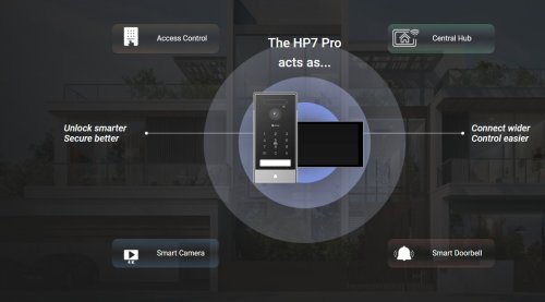 Kromě biometrie nabízí HP7 Pro také RFID čipy (3 přívěsky v balení), zadání číselného kódu, QR kód pro návštěvy, nebo přístup na dálku přes aplikaci EZVIZ. Dále můžete ovládat zámek i bránu přímo z interiérového 8" monitoru.