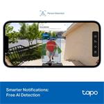 DETEKCE A UPOZORNĚNÍ Senzor: PIR pohybový senzor (dosah 7,6 m) AI detekce: Detekce osob a pohybu Detekční zóny: Ano Notifikace: Systémové oznámení, s náhledem (Tapo Care)