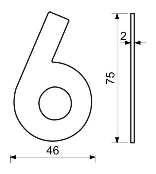 Číslo domovní č. 6, 75 mm, nerez ČER.