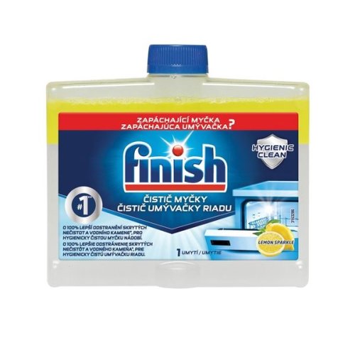 Čistič myčky Finish s vůní citrónu zbavuje myčku usazenin a vodního kamene