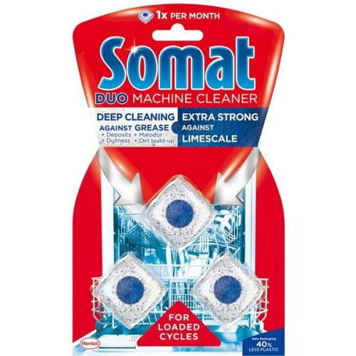 Čistič myčky nádobí Somat je první a jediný Somat čisticí prostředek, který můžete používat během běžného cyklu mytí nádobí Jednoduše ho položte na dno myčky naplněné nádobím Čistič působí hluboko uvnitř …