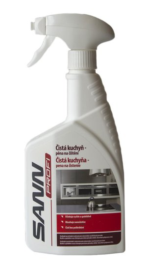 Čistič SANN PROFI Čistá kuchyně 500 ml, pěna. objem: 500 ml - univerzální pěna určená k čištění a péči o kuchyňské povrchy - působí rychle a efektivně - dokonale odstraňuje mastné skvrny a nejobtížnější …