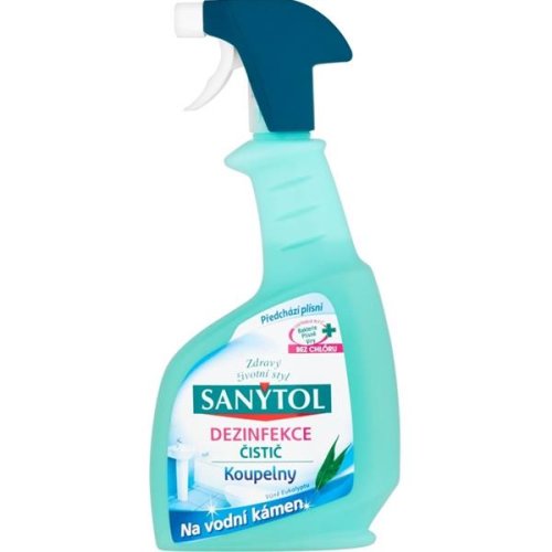 Teplo a vlhkost v koupelně podporují růst plísní, bakterií a virů. Použití standardizovaného dezinfekčního prostředku se speciálním účinným složením, brání přemnožení nežádoucích mikroorganismů, tvorbě plísní a vodního kamene. Sanytol vyvinul dezinfekční čistič koupelny, bez chlóru, který odstraňuje vodní kámen, rozpouští mýdlové usazeniny, zabraňuje tvorbě plísní a dezinfikuje v jediném kroku. Dezinfekční čistič na koupelny zaručuje dokonalou hygienu a ničí 99,9 % mikroorganismů. Zanechává povrchy ošetřené, čisté a lesklé se svěží vůní eukalyptu.